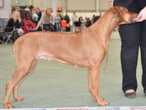 Kiwi was also awarded Excellent with CQ, but was unplaced in the big champion-bitch class. Considering that there are only 5 months since she gave birth to 10 puppies, and her tits and belly haven’t drawn up properly, I was very surpised and happy for this result! 🙂 Breed entry 63.